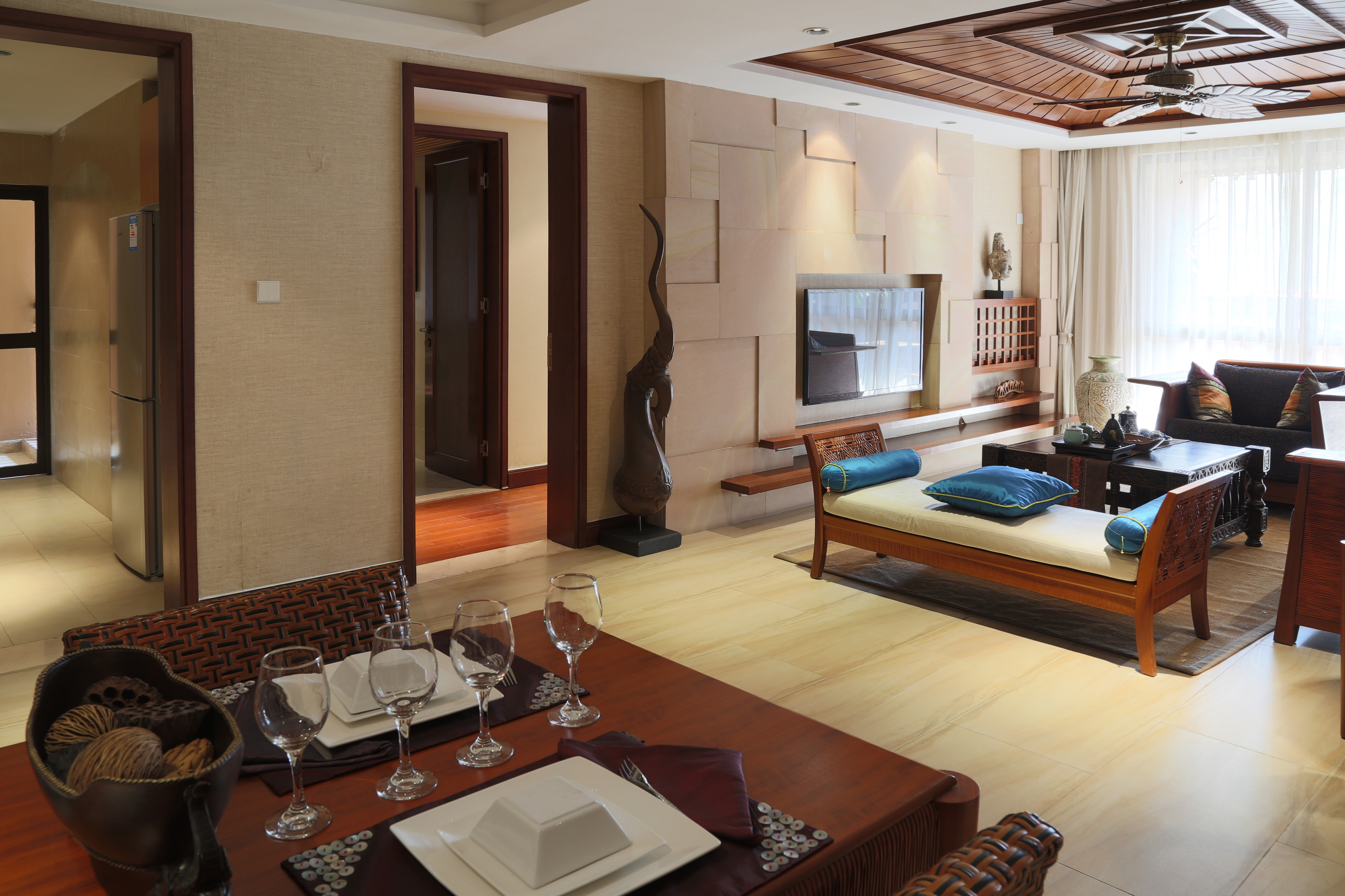 2、室內(nèi)墻面、地面、頂棚以及家具陳設乃至燈具器皿等均以簡潔的造型、純潔的質(zhì)地、精細的工藝為其特征。