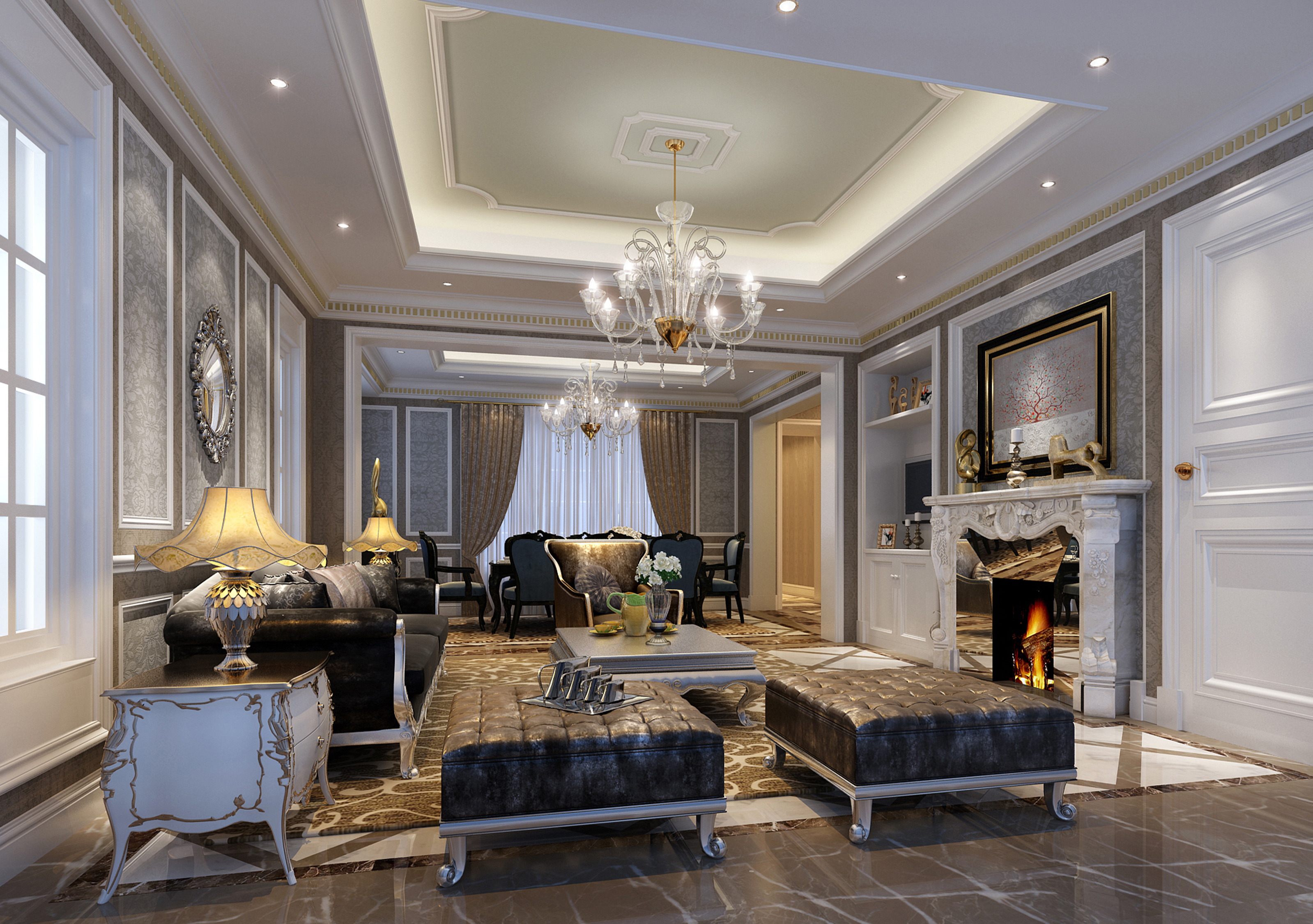 仿天然石材,使用規(guī)則或不規(guī)則的造型,點綴于埡口邊框上,營造一種回歸自然之感。另外,美式田園風格經常使用原木色家具,埡口用同樣材質裝飾,顯得更加清新。