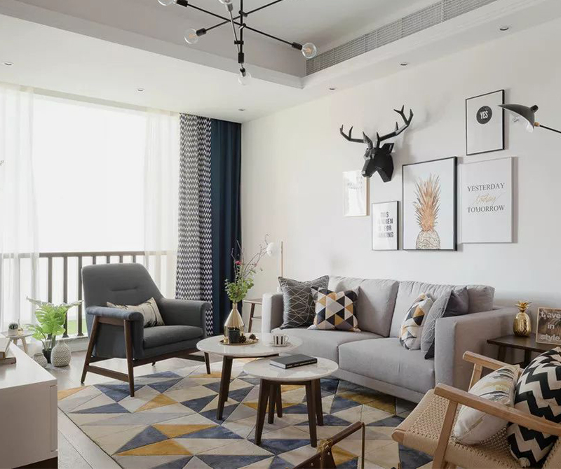 5、面積小的客廳布局一定要緊密,在保持布局緊密的同時(shí)還需要搭配上冷色調(diào)的家具和裝飾品,因?yàn)榫哂欣涓械纳{(diào)能讓人產(chǎn)生后退的視覺效果,減少了客廳的擁擠感。