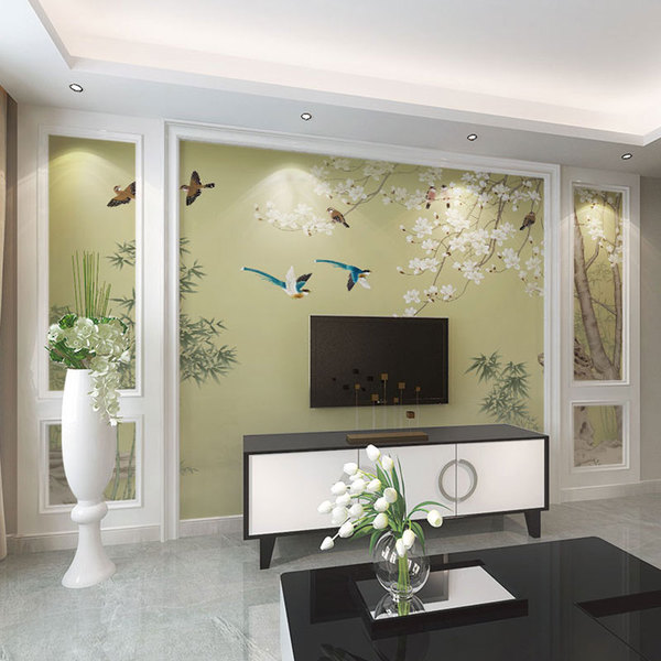 墻紙電視背景是最最常見的,價格也實惠,比較溫馨時尚。便于更換,且環(huán)保,遮蓋力強,能起到很好的點綴效果。